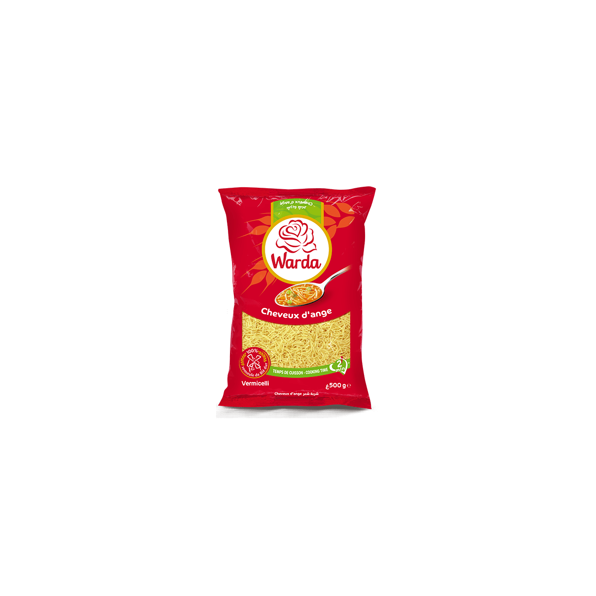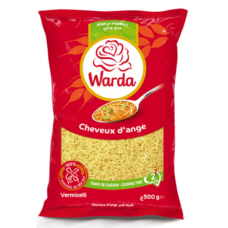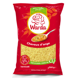 Les Cheveux d’Ange 500 g – Warda sont des pâtes fines et délicates, parfaites pour les soupes, bouillons ou plats légers. Leur texture légère permet une cuisson rapide tout en conservant fermeté et saveur.